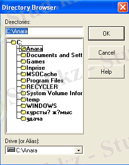 - Path -мәліметтер қорынан каталогқа жол. Псевдоним параметірін өзгертуге болады (мысалы: атын, жолын) . Pathпараметірінің мәнін қолымен енгізуге немесеSelect Directory(каталог таңдау ) терезесінің көмегімен таңдауға болады. Бұл маңынан екі рет шерту арқылы мәнінің жолының соңындағы көп нүктенібасу арқылы шақырамыз. Көп нүктеPathпараметрі мен жолды таңдау барысында пайда болады. Локалдық диск (С:) -да дайындаған орындағы(Anara) папкасын таңдап аламыз. Содан кейін ОК батырмасын басқаннан кейін жол автоматты түрдеPathмәні ретінде енгізіледі. Applyбатырмасы арқылы сақтаймыз.