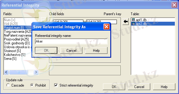 3. Database Desktop программасында негізгі кестелерді байланыстыру.