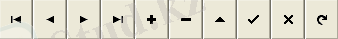 - TDBNavigator -мәліметтер топтамасымен байланысқан көрсетілімдерді басқаруға мүмкіндік береді. Бұл орналасқан. DBNavigatorкомпоненті үшін деData SourceқасиетінеData Source1мәнін беру қажет. Бұл компонент келесі батырмалардан тұрады: