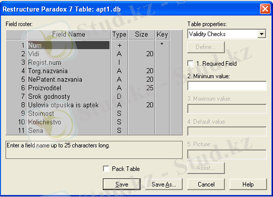 Database Desktop программасында аптека жұмысын келесідей қадамдар арқылы орындаймыз.