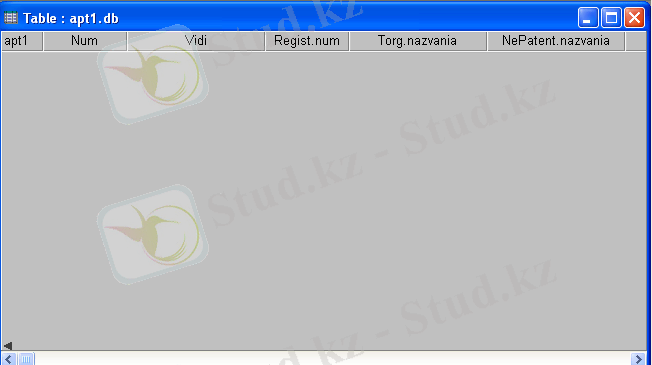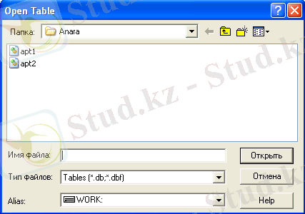 - Table -мәліметтер қорының кестесіне арналған берілгендер жиынтығы. Бұл компонентBDEбетінде орналасқан. Table компоненті кей уақытта мәліметтер қорының бір ғана кестесімен байланысуы мүмкін. Бұл компонентті тек мәліметтер қорының локалдық дискісне (dBase, Paradox) ғана пайдаланады. Кесте арасындағы байланыс және Table компонентін мәліметтер қоры кестесімен байланыстыру үшін - оның қасиеттерін пайдаланамыз. Соның біріDatabaseName. Бұл қасиеттің маңын шертсең сырғымалы тізім беріледі, осы тізімнен BDE Administrator программасында берген жалған атты береміз. Бұдан аламыз. Бұл қасиет кестенің атын анықтайды(Database Desktop ортасында жасаған кестелердің тізімі беріледі) . TableName қасиетін бергенде файлдың аты көрсетіледі. Барлық қасиеттер берілген береміз.