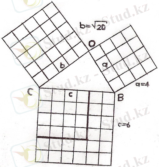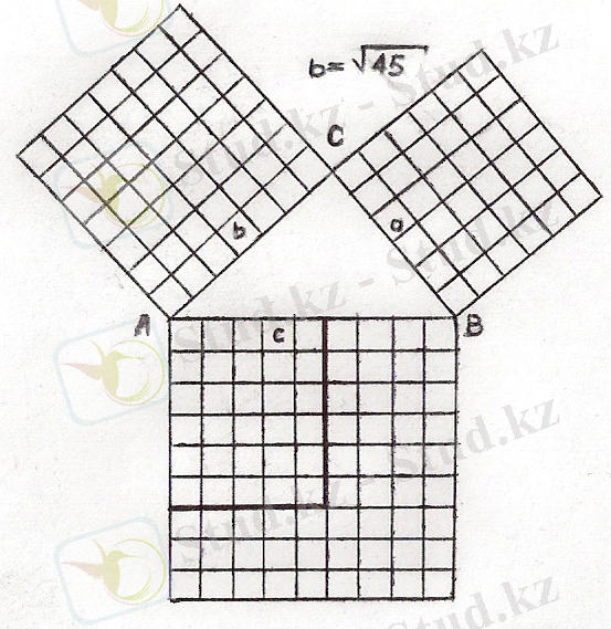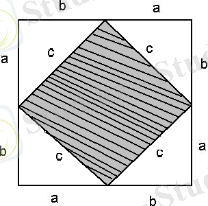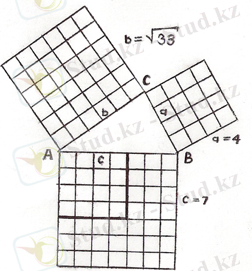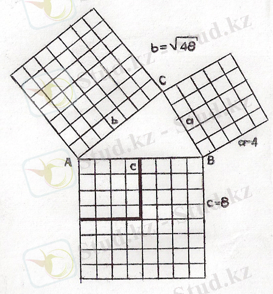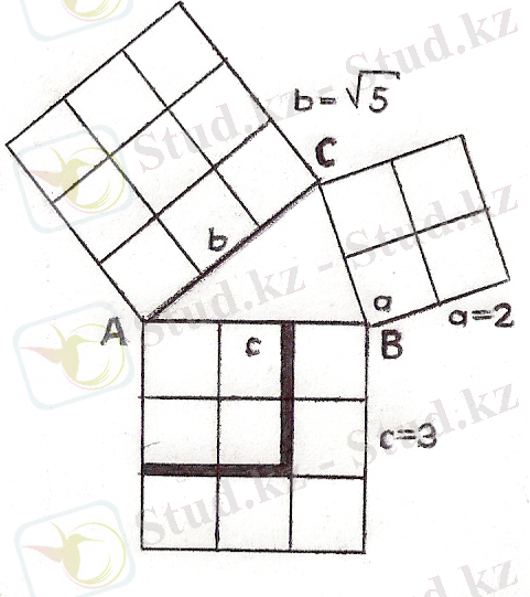 Тік бұрышты үшбұрыштың гипотенузасына салынған квадраттың ауданы катеттеріне салынған квадраттардың аудандарының қосындысына тең болады [4] .