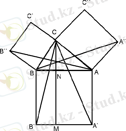 екі есе артық болып шықты. Ал айтылып отырған үшбұрыштар өз ара тең. Ендеше ВСС`В`` квадраттың ауданы ВB`МN тік төртбұрыштың ауданына тең болады.