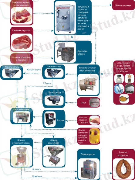 1-сурет. Шағын кəсіпорында қайнатылған шұжық өнімдерін (шпиг) өндіру схемасы