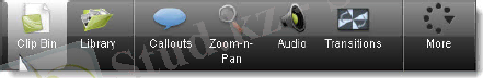 Clip Bin (Клиптер қоржыны) қосымшасы таңдалып тұрса, Сервис панелінде ағымдық жобаға байланысты барлық мультимедиялық файлдар орналасады. Бұнда видео, сурет, музыканы импорттап, қосуға болады. Импортталған файлдар Уақыт шкаласында қолданылып, өңделеді.