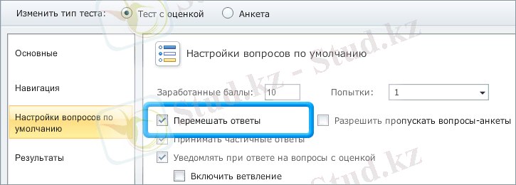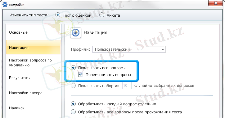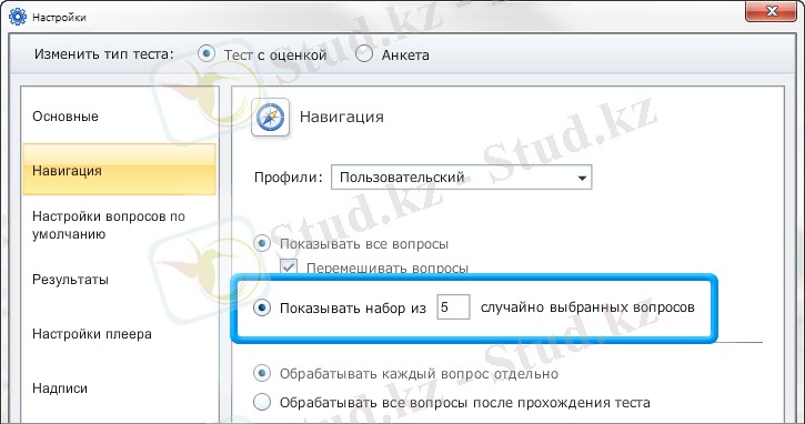 6. Сұрақтардың кездейсоқ берілуін баптау