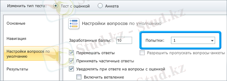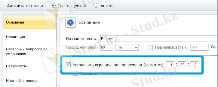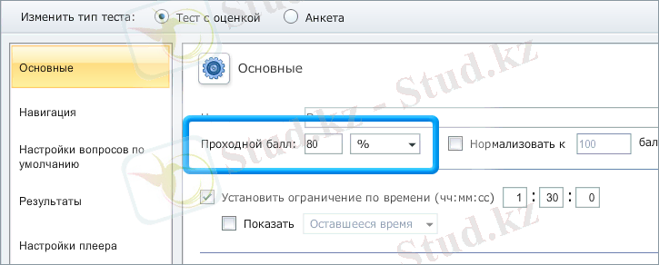 7. Өткізу баллын, жауап беру мүмкіндіктерін баптау және уақыт бойынша шектеу қою.