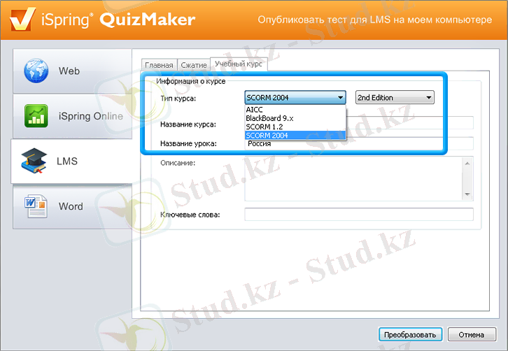 9. SCORM/AICC қашықтан оқыту жүйесімен сыйысымды файлды жариялау (публикациялау) .
