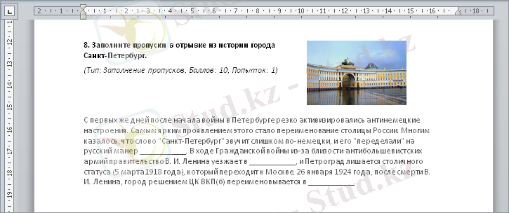 Тестті Microsoft Word бағдарламасына экспорттау тест тапсырмаларының орфографиялық қателерін қарау үшін ғана емес, сонымен қатар тестті аудиторияда өткізу үшін оның қағаз көшірмесін алуға мүмкіндік береді.
