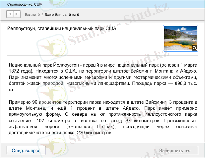 Барлық тапсырмалар жаттығу режимінде орындалады. Тапсырмаларды орындау нәтижесі процентпен бағаланады.