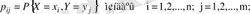 Кестенің i- ші қатары мен j- ші бағанының қиылысында ықтималдар орналасқан: