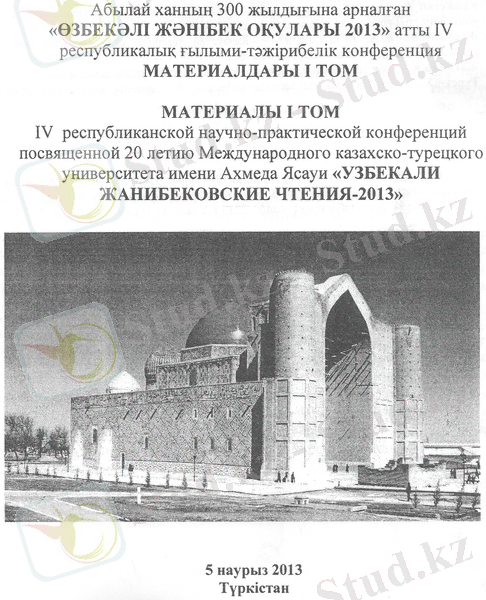 IV республиканской научно-практической конференций посвященной 20 летиіс Международного казахско-турецкого университета имени Ахмеда Ясауи «УЗБЕҚАЛИ ЖАНИБЕКОВСКИЕ ЧТЕНИЯ-2013»