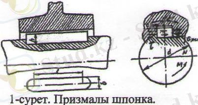 Призмалы шпонкалар (1-сурет) кернеусіз қосылысқа жатады, сондықтан олардың жоғарғы бетінде саңылау қалдырылады және айналу моменті біліктен күшпекке шпонканың бүйір қабырғасы арқылы беріледі. Сол себепті шпонканың бүйір қабырғасында жаншылу кернеуі мен шпонканың қимасында қиылу кернеуі пайда болады. Ал кернеу шамасын төмендегіше табуға болады: