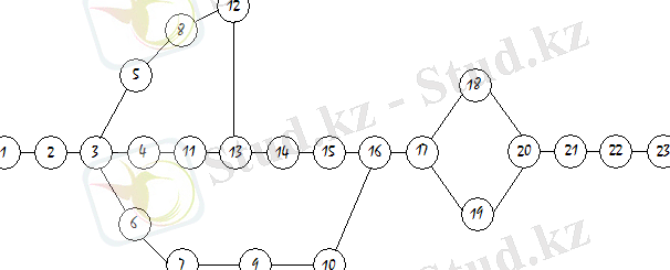 Түгендеу жүргізудің келтірілген ережелерін жалпылай отырып, оның кезеңдерінің көрнекі болуы үшін, төмендегі желілік графикті ұсынуға болады, сәл ғана өзгерістер енгізгеннен кейін ол есептің әр түрлі объектілеріне қолданыла алады (1. 1-сурет) . Желілік графикте көрсетілген оқиғалардың түсіндірмесі 1. 2-кестесінде көрсетілген.