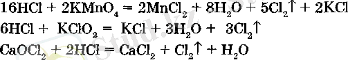 Осыған ұқсас тұз қышкылына басқа тотықтыргыштармен (КМпО4, КСЮд, СаОС12 және т. б. ) эсер ету аркылы да хлор алады: