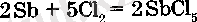 Сурьма ұнтагыхлор атмосферасында өздігінен сурьма (V) хлоридін түзе жанады: