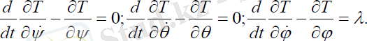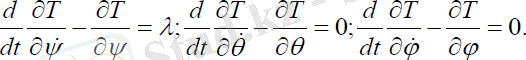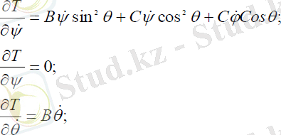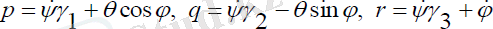 Мұндағы, φ’, ψ’, θ’ - сәйкесінше меншікті айналыс, прецессия, нутация бұрыштарының бұрыштық жылдамдықтары, ал γ1, γ2, γ3 - бағыттаушы косинустардың мәндері, олар орбиталды координаталар жүйесінің айналуының бұрыштық жылдамдықтарын береді және былай анықталады: