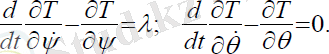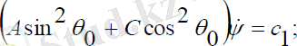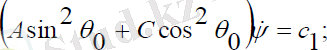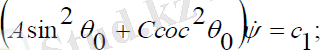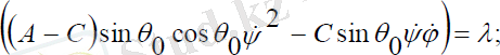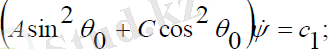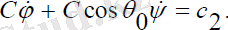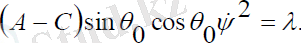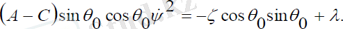 (3. 23) теңдеулер жүйесінің бірінші теңдеуінен ψ -прецессия бұрышының жылдамдығын тауып, екінші теңдеуге қойып, θ -ға бір рет интегралдасақ, θ - ға және ψ -ге қатысты бірінші ретті сызықты емес теңдеулер жүйесін аламыз: