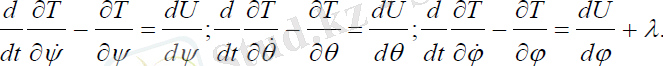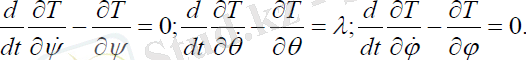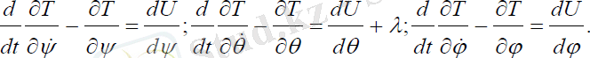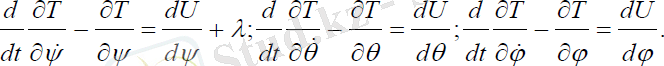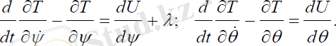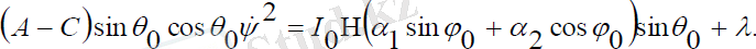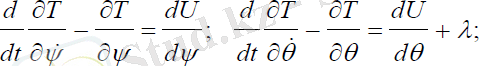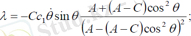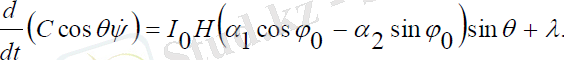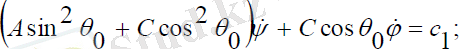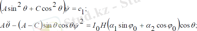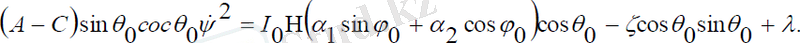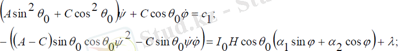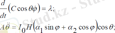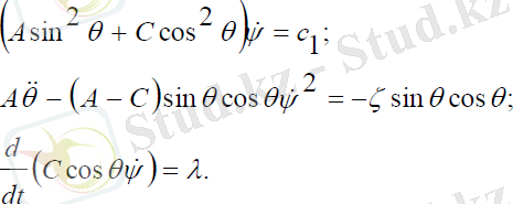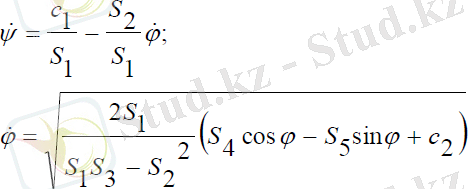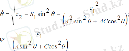 Мұндағы, с1- интегралдау тұрақтысы. (3. 32) теңдеулер жүйесініңбіріншісінен ψ-прецессия бұрышының жылдамдығын тауып екінші теңдеугеқойып, θ -ға бір рет интегралдасақ, θ - ға және ψ -ге қатысты бірінші реттісызықты емес теңдеулер жүйесін аламыз: