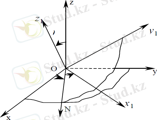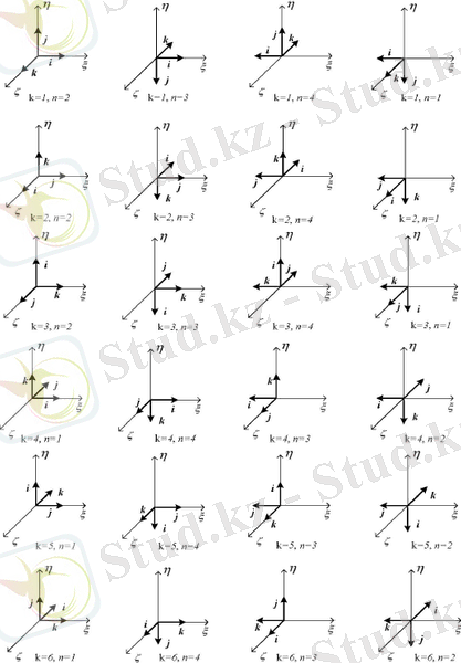 Серікке қатаң бекітілген координаталар жүйесінің орбиталды координаталар жүйесіне қатысты орны φ, ψ, θ (φ- меншікті айналыс бұрышы, ψ - прецессия бұрышы, θ - нутация бұрышы) Эйлер бұрыштарымен анықталады. Эйлер бұрыштары төменгі суретте көрсетілгендей берілген. Серіктің қозғалысын негізгі Оξηζ координаталар жүйесіне байланыстырамыз.