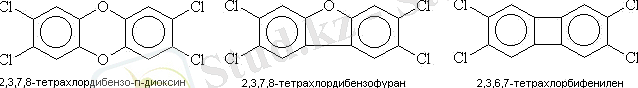 Диоксин тек өзіне ұқсас өкілдерінің бір түрі. Оның құрамындағы элементтерді өзгертсе, басқа да элементтермен алмастырса, өзіне тән улар формулаларын алса болады. Олар мыналар:
