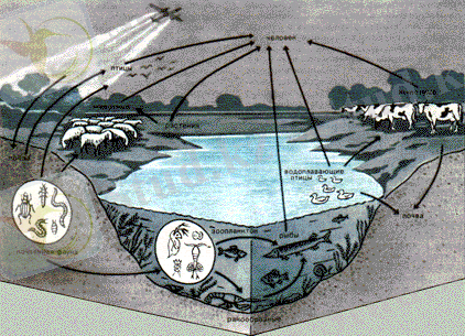 Биосферада ең алғаш топыраққа сіңген диоксинді өсімдіктер қабылдайды. Ол топырақта кемімей, керісінше, биологиялық, физикалық, химиялық факторлар арқылы көбееді. Ол биосферада микроорганизмдер, өсімдіктер және жануарлардың қалдықтарында сақтала береді. Осылайша қоршаған орта объектілері диоксин үшін баспана болып табылады. Осы уланған өсімдіктерді қорек ретінде қолданатын жануарлар мен құстардың да ағзасында диоксин мөлшері өсе береді.