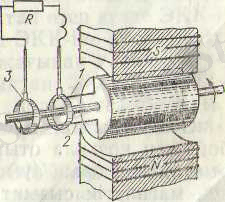 Айнымалы токтың қарапайым генераторының құрылысына схемасы 30-суретте көрсетілген. электр магниттін, орамасын тұрақты қоздырылатын магнит өрісінде, 1 және 2 өткізгіштердек тұратын орам қойылған. Орамның ұштары бірінен-бірі және корпустан оқшауланған және ораммен бірге айналып тұратын метал сақиналармен қосылған. Сақиналарда қозғалмайтын шеткалар 5 орналастырылған, осылар арқылы орам жүктеме кедергісіне тұйықтала алады. V және 5 полюстарының арасындағы магнит өрісі бірқалыпты, яғни барлық жерде магниттік индукцияның шамасы мен бағыты бірдей дейік. Бір айналымға кеткен уақыт ішінде ара жазықтығы 360° бұрыш жасайды.