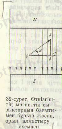 Тізбектегі айнымалы синусоидалы ток синусоидалық электр қозғаушы күшінің әрекетінен ауады. Магниттік сызықтарды қиып өтетін (32-сурет) түзу өткізгіштегі индукцияның электр қозғаушы күші мына формуламен анықталады: е =Blv sin а, мұндағы В- магниттік индукция; өткізгіш ұзындығы; V - оның орын ауыстыру жылдамдығы.