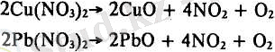 2. Ауыр металдар тұздарының айырылуы. Екі пробирка алып, біріне азот қышқыл мыс, екіншісіне азот кышқыл қорғасын тұздарынан 0, 2-1 грамдай салыңдар. Пробиркаларды штативке сәл көлбеу бекітіп, жайлап қыздырыңдар. Тұздар балқымай, бірден қоңыр түсті азот диоксидін және оттегін бөліп, шытырлап айырыла бастайды. Ол реакцияларды мынадай теңдеулермен көрсетуге болады: