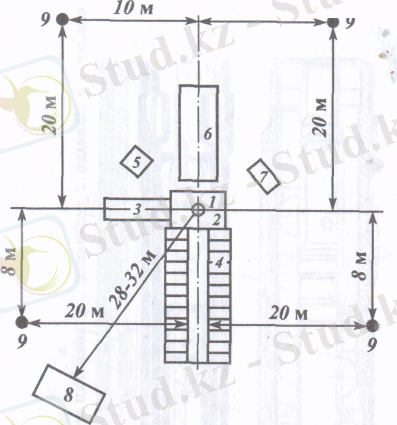 5- кабеленаматыватель; 6- алаң агрегаттың астына; 7- жарық беретін құру ; 8- культбудка ; 9-зәкір