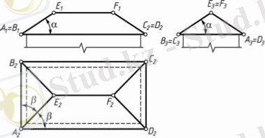 2-мысал. Тік призма мен жалпы жағдайдағы жазықтықтың қиылысуы. 1. 3-суретте тік призма мен қиылысатын екі түзумен берілген α f∩h) жазықтығымен қиылысуы көрсетілген.