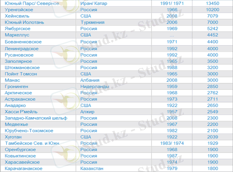 Әлемдік және Қазақстандық ірі газ кен орындары мен газ өндіру көрсеткіштерінің талдауы
