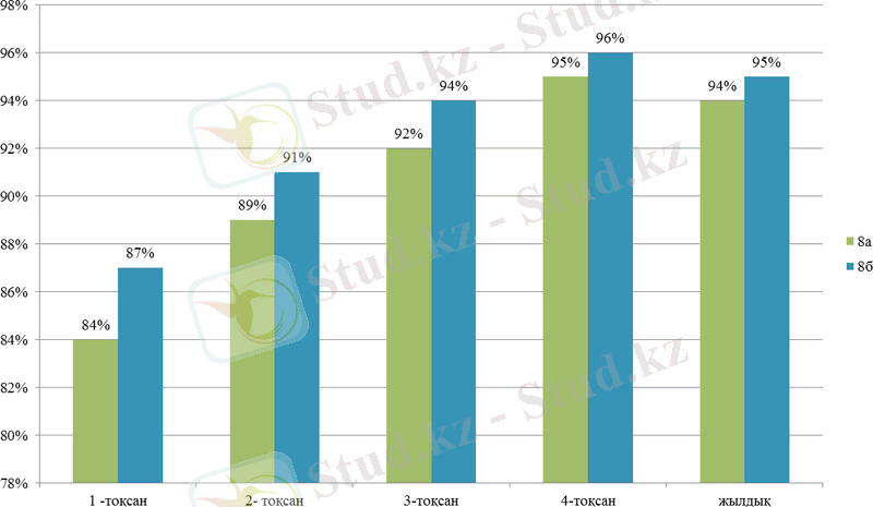 Математика пәні бойынша 8а, 8в сынып оқушыларының үлгерім сапасы.