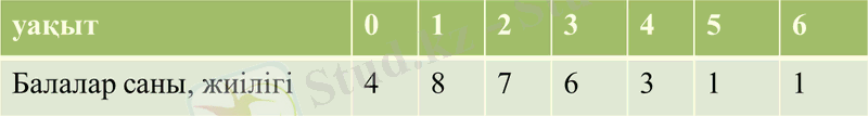Зерттеу нәтижесінде оқушылардың теледидар қарауға жіберетін уақыттары бойынша үлестірілімінің кестесі жасалды.