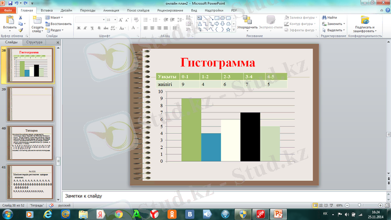 Мұғалім оқушылардан белгіленген күні математика сабағынан үй тапсырмасын орындауға қанша уақыт жібергендерін анықтап келулерін өтінді. Осы алынған мәліметтер бойынша жиілік кестесі толтырылып және кесте бойынша полигон тұрғызылды.