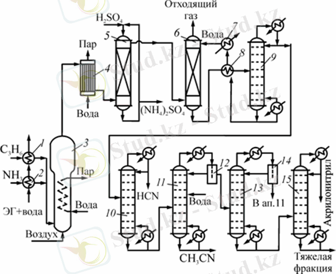 Акрилонитрил өндірісінің технологиялық сызба-нұсқасы