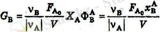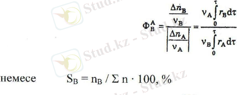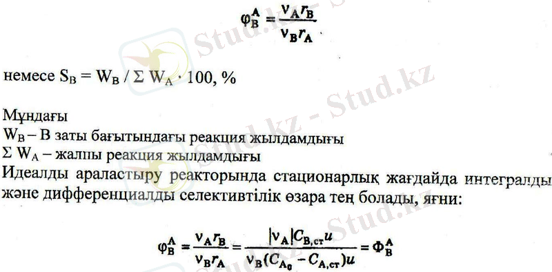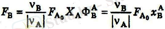 Стационарлы жағдайда В затының мольдік ағыны бастапқы А затының молтдік ағыны(F A ) , айналу дәрежесі(X A ) интегралды селективтілігі (Ф B A ) және оның шығымы (X B A ) арасында мынадай байланыс бар: