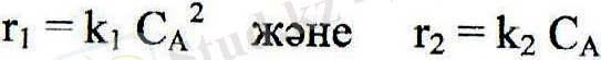 Ал, идеалды ығыстыру және периодты түрде жұмыс істейтін реакторлар үшін кинетикалық теңеу түрі r 1 =k 1 C A және r 2 = k 2 C A 2