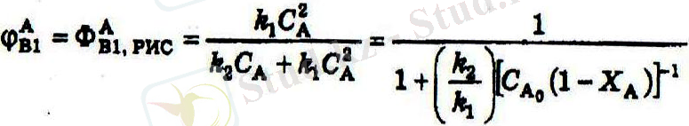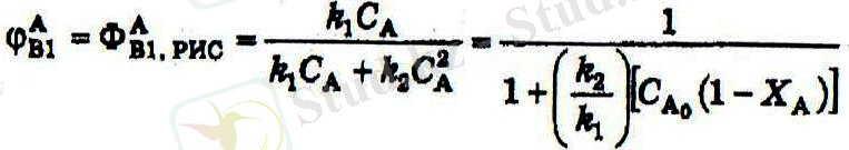 Қарастырылып отырған жағдай үшін идеалды араластыру реакторында И өнімі бойынша селективтілік төмендегіше анықталады: