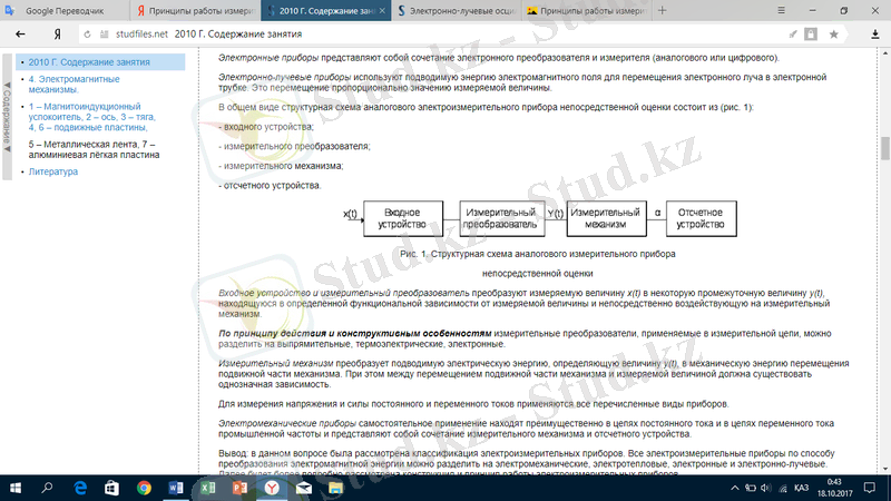 Қорытынды: бұл мәселеде электр аспаптарын жіктеу қарастырылды. Электромагнитті энергияны түрлендіру әдісімен барлық электрлік құрылғылар электромеханикалық, электротермиялық, электронды және электронды-сәулелі бөлінеді. Бұдан әрі электрлік өлшеу құралдарының құрылысы мен жұмыс істеу принципі толығырақ қарастырылады.