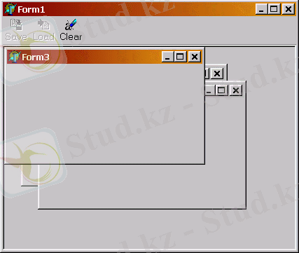 Мысалы біркелкі құралдар панелі және көптеген әртүрлі формалары бар MDI приложенияны қарастырайық. Бұл құралдар панелінде «Сақтау», «Жүктеу» және «Тазалау» командалары бар, бірақ терезелердің әрқайсысы бұл командаларға әртүрлі жауап береді. Интерфейстерді жариялау модулін жасайық: