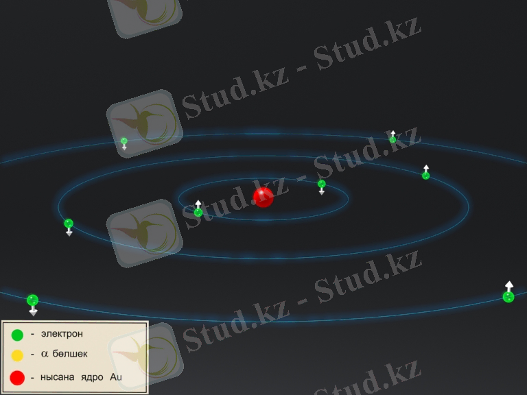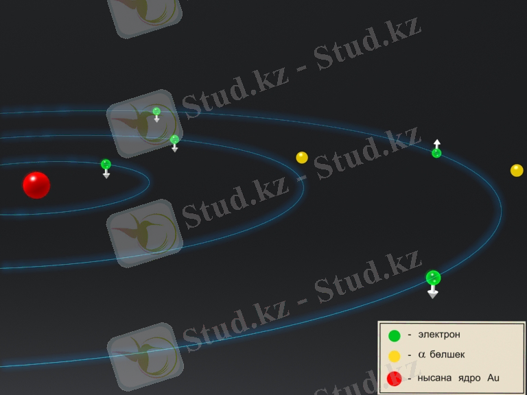 Э. Резерфорд тәжірибесін былай қорытындылады: үлкен жылдамдықты ауыр α-бөлшектерінің қозғалыс бағытының өзгеруіне атомда массасы едәуір үлкен оң зарядты орталық әсер етеді, ал α-бөлшектердің 180 0 -қа жуық бұрышқа 2-сурет