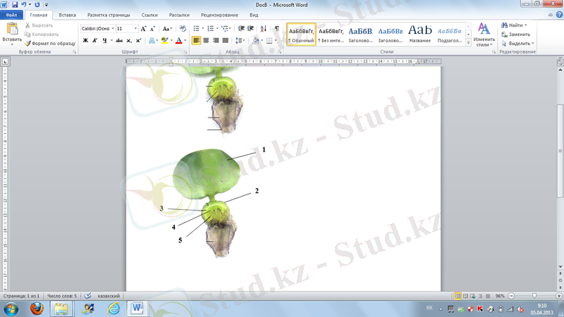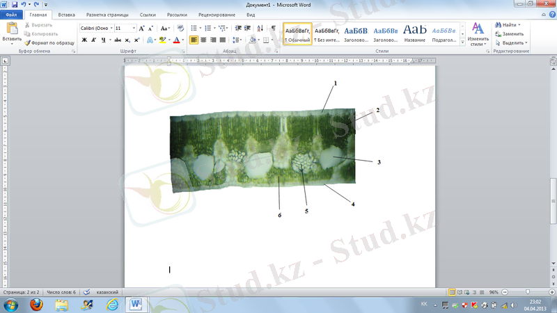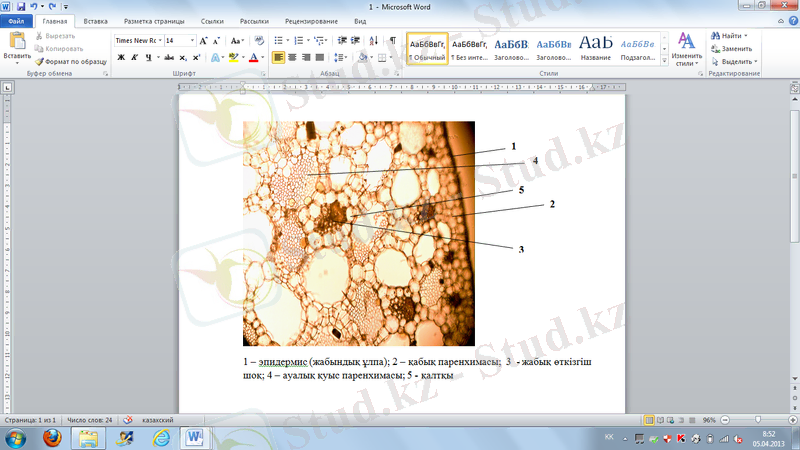 Мезофильдің борпылдақ паренхимасының қалыңдығы 25, 64 ± 2, 0мкм, ол аз көлемді, клеткалары айқын клеткааралықты, 2-3 қатарлы. Төменгі эпидермис клеткалары салыстырмалы майда, пішіндері сопақша, устицесіз, кутинделмеген (сур. 3) .