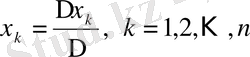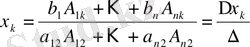 нөлге тең болмағандықтан, оның шешімі Крамер формулаларымен анықталады. Мұнда
