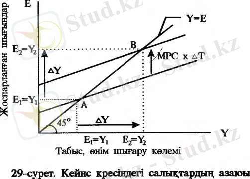 Yd = Ү - Т -ға өседі. Тұтыну шығындары сәйкес түрде (∆ТхЬ) көлеміне өседі, бұл жағдай жоспарланган шығындарды оңға қарай жоғары қозғалтады және тепе-тендік өнім көлемін Ү