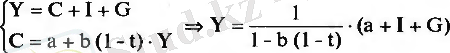 Ашық экономикада тепе-теңдік өнім көлемі мен мемлекеттік шығындар мультипликаторының көлемі төмендегі теңдеулер жүйесін шешу арқылы табылады.