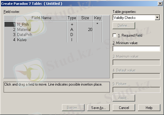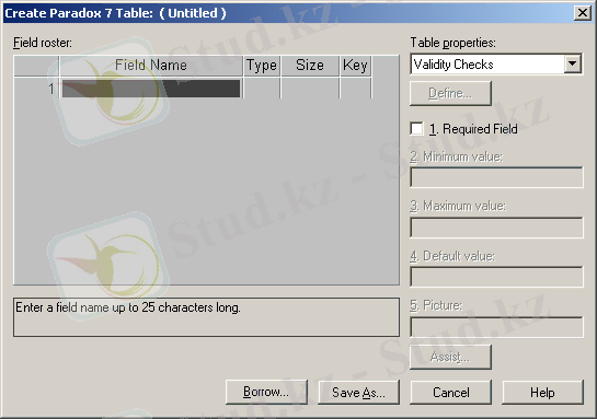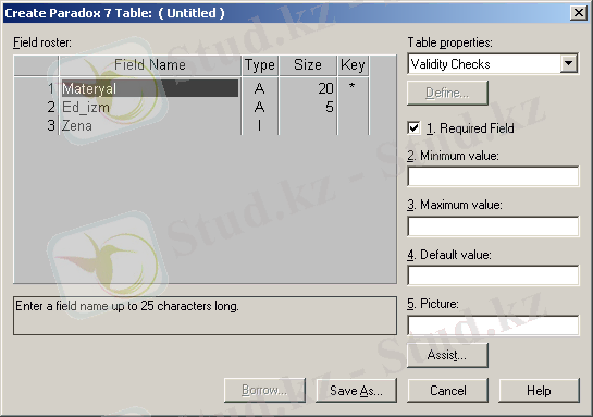 Сурет 6 - Database Desktop утилиті: МБ кестесінің құрылымын анықтау терезесі