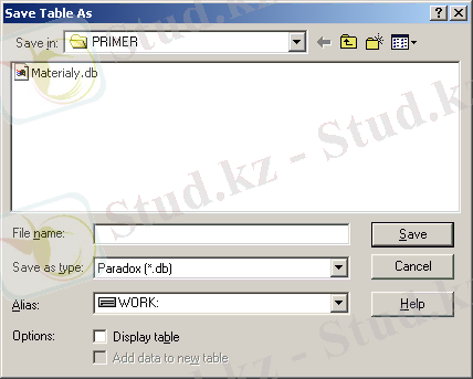 Сурет 10 - Кестені сақтау терезесі
