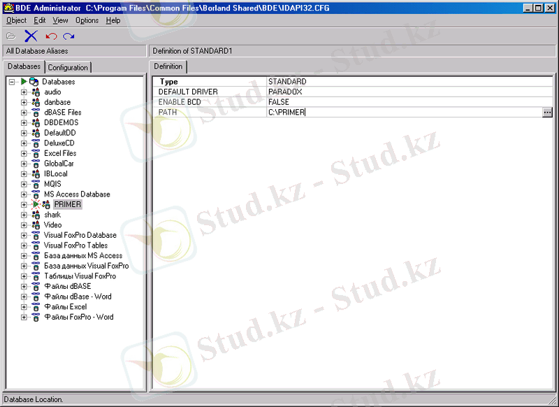 Delphi -де МБ тіркеуі BDE Administrator утилитінің көмегімен іске асырылады. Сондықтан біздің "C :\ PRIMER " BDE Administrator - да іске асырылады.