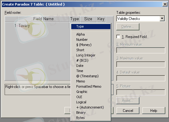СУБД Paradox барлық мүмкін типтері 8-суретінде келтірілген.